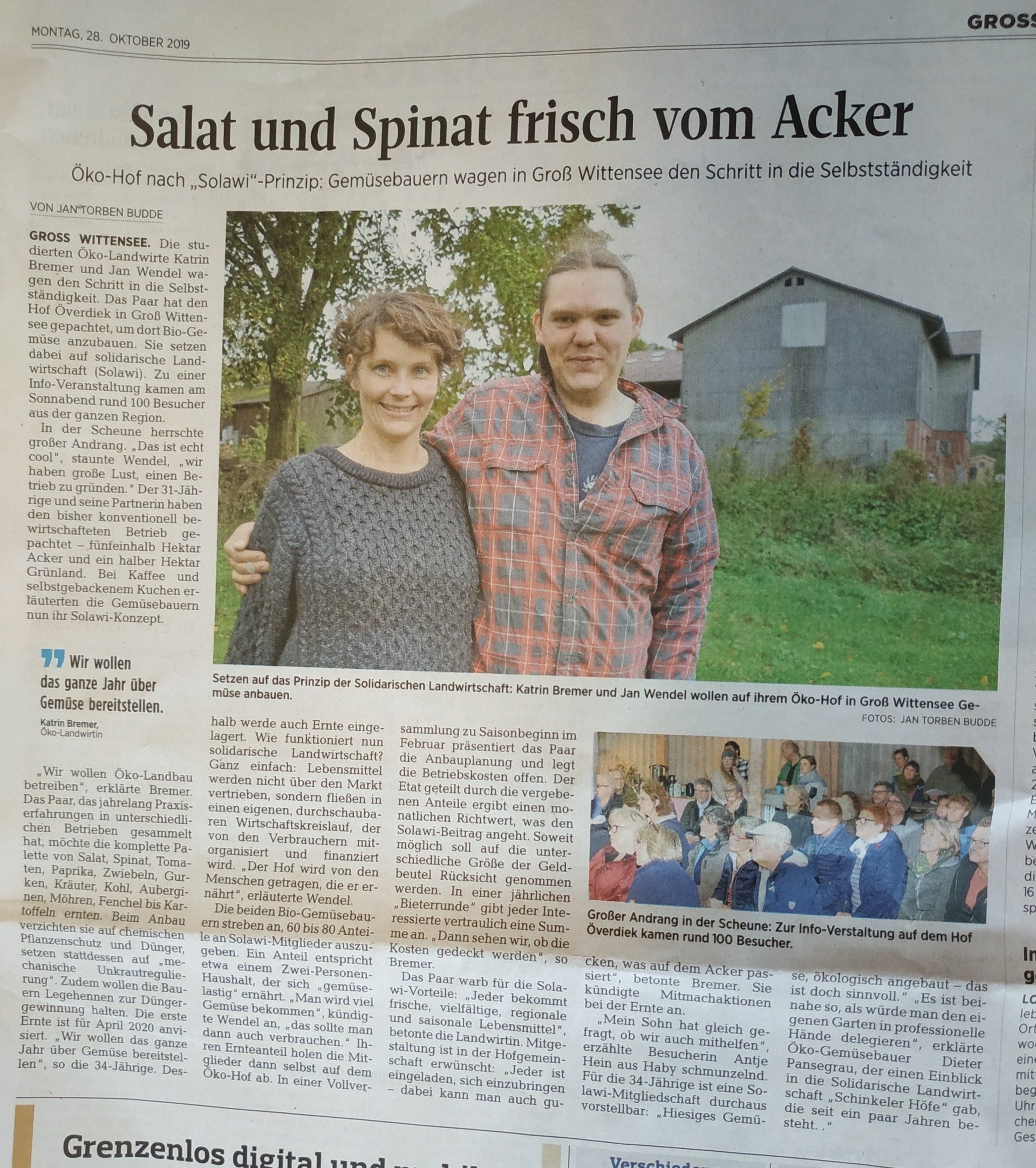 Während den Veranstaltungen, aber auch im Nachgang haben sich viele Menschen dafür entschieden einen Anteil für kommende Saison zu beziehen. Wir haben uns für die erste Saison eine Obergrenze von 80 Anteilen gesetzt, die wir zum allergrößten Teil nun auch vergeben haben. Sollte noch Interesse an einem Anteil bestehen, empfiehlt es sich Kontakt mit uns aufzunehmen.